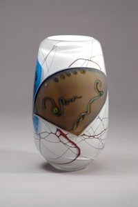 WHITE VINED DRAWN VESSEL BLACK DRAWN VESSEL
