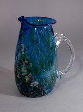 Select an individual pitcher to view multiple shots, a detailed description, dimensions and price. Please keep in mind that all hand blown soda lime glass is subject to heat shock. Pitchers are for room temperature or cold beverages only.
