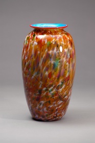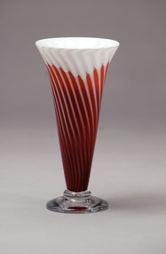 RED & WHITE OPTIC VASE PEACH FRIT & SILVER VASE