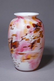 GOLD FRIT FOOTED VASE BANDED VASE CHERRY BLOSSOM FOOTED VASE